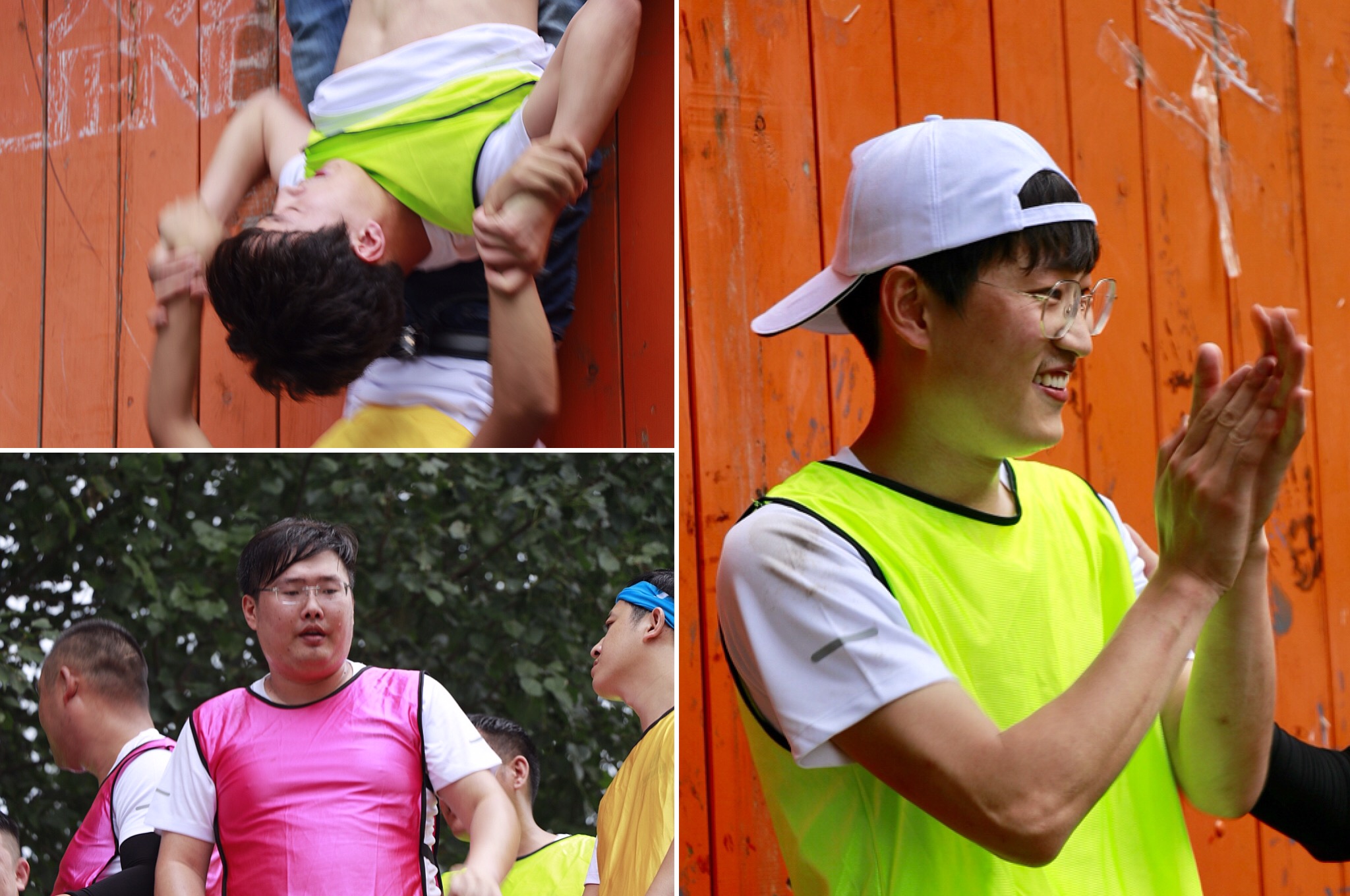 著伙伴的手腕,將他們一個個拉上高墻,其他的隊友在后面雙手伸向天空筑成人墻保護著正在攀爬的隊友。最難的是最后一個隊員要怎